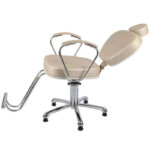 - Acabamento dos braços em madeira revestida com espuma e courvim, protegendo o braço cromado do contato com o braço do cliente, evitando um desgaste antecipado do cromado da cadeira.