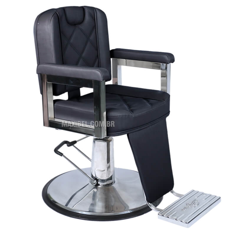 Tenha uma cadeira de barbeiro com um estilo especial. A base redonda cromada é larga, garantindo robustez, estabilidade e, principalmente, segurança ao seu cliente. Os acabamentos do encosto e do assento da cadeira dão um visual bem especial. O mecanismo de declínio é reforçado, para que na hora de fazer a barba, o cliente se sinta seguro e confortável.