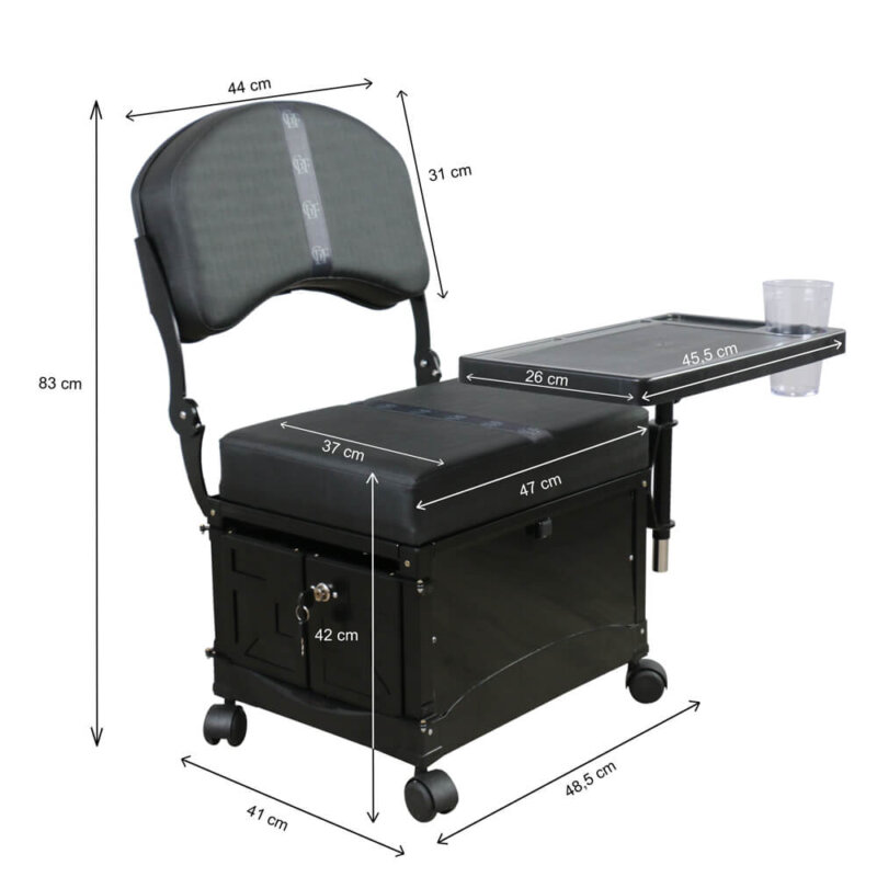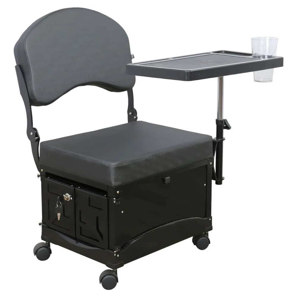 Cadeira de manicure DZ com gaveta e porta com chave para organização e segurança.