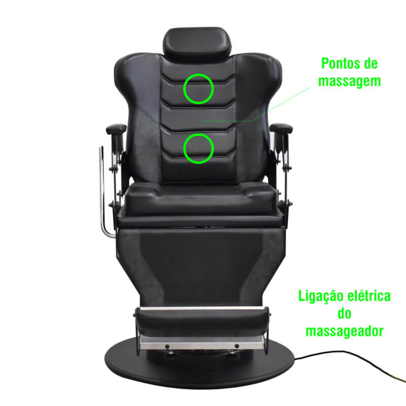 Conforto elevado: encosto com dois pontos de massagem com três níveis de intensidade, acionados por controle remoto. Espumas de alta qualidade em todas as partes de contato.
