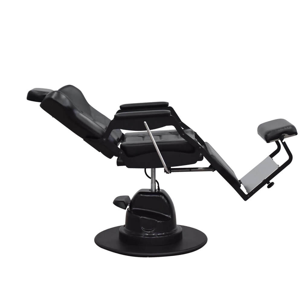 Funcionalidade total: braços anatômicos, apoio de pés resistente e confortável, cabeçote com regulagem de altura e sistema de reclínio com alavanca cromada.