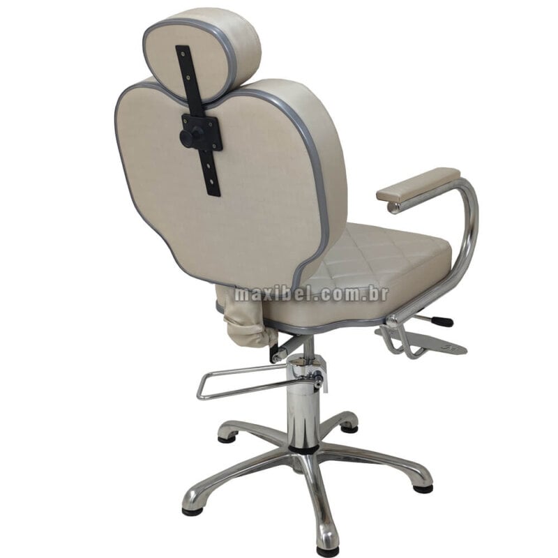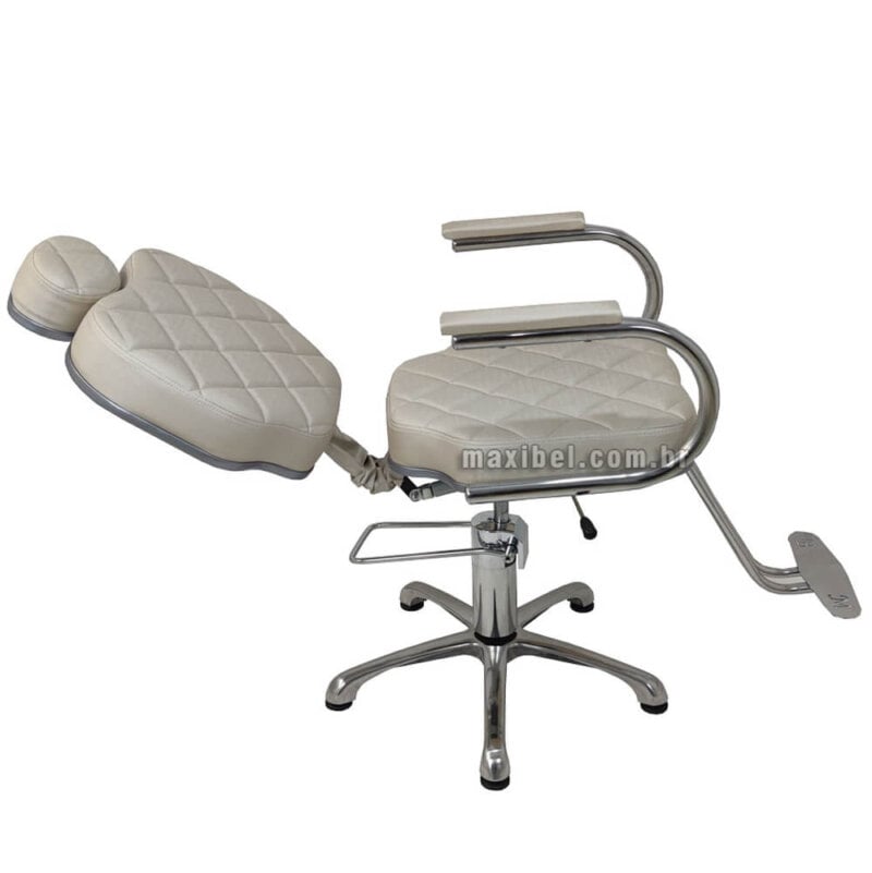 Este modelo de cadeira tem um encosto reclinável, permitindo que a cliente fique quase deitada durante os procedimentos. Ele vem com alavanca de ajuste, para o encosto, possibilitando várias posições confortáveis.