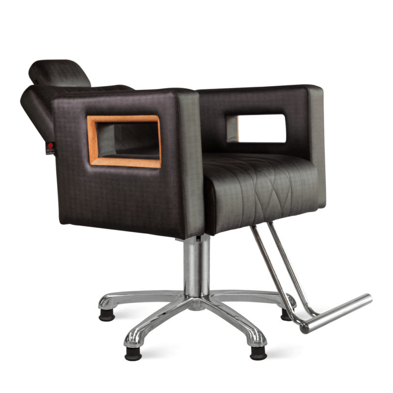 Essa cadeira para salão de destaca de qualquer outra pela sua qualidade, mas principalmente pela sua moldura de madeira na lateral dos braços. Reclinável e com apoio de cabeça facilitando diversos procedimentos no seu salão de beleza. Essa cadeira também conta com: