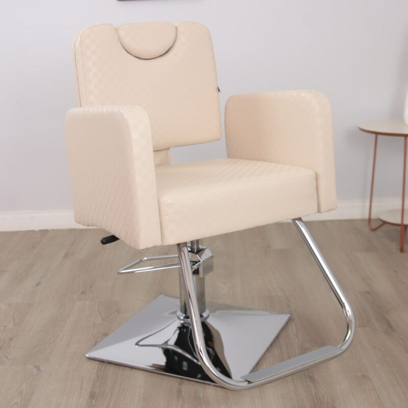 Uma cadeira diferenciada, com base quadrada, para seu salão de beleza ou studio de maquiagem.