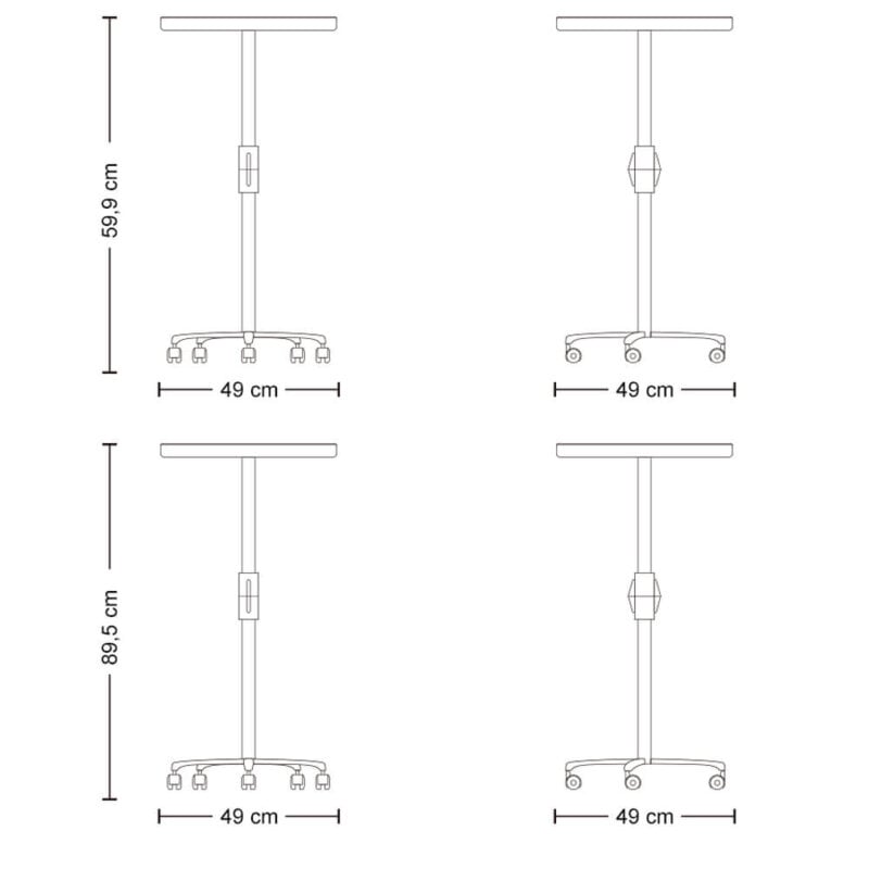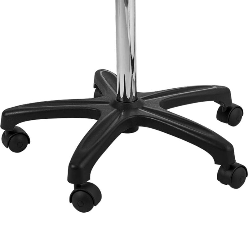 Estrutura: Sua estrutura é de polímero injetado com haste de aço e regulagem de altura, permitindo que o profissional trabalhe em pé ou sentado;