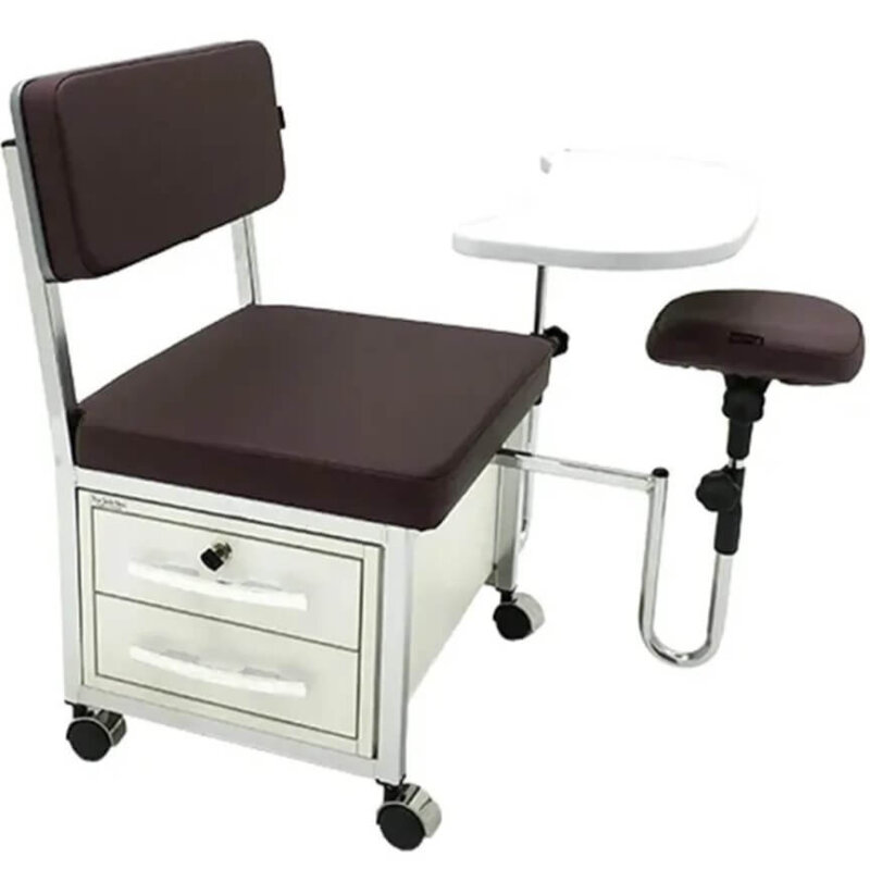 Ciranda de manicure grande, com suporte de pés para pedicure, com 53cm de largura no assento e no encosto, garantindo total conforto a profissional ao fazer unhas.