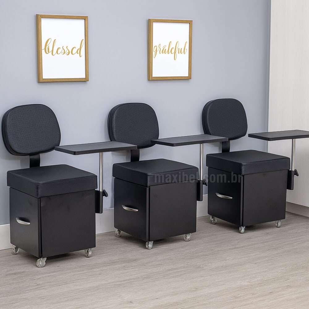 Cadeira cirandinha para manicure e pedicure com tampo ajustável e gavetão.
