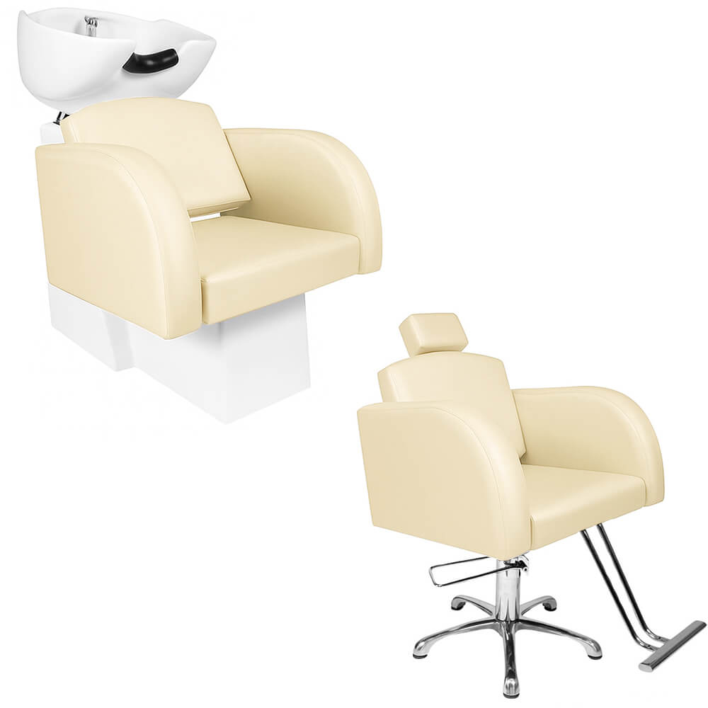 Kit cabeleireiro é composto por: 1 cadeira reclinável e 1 lavatório de cuba de louça.