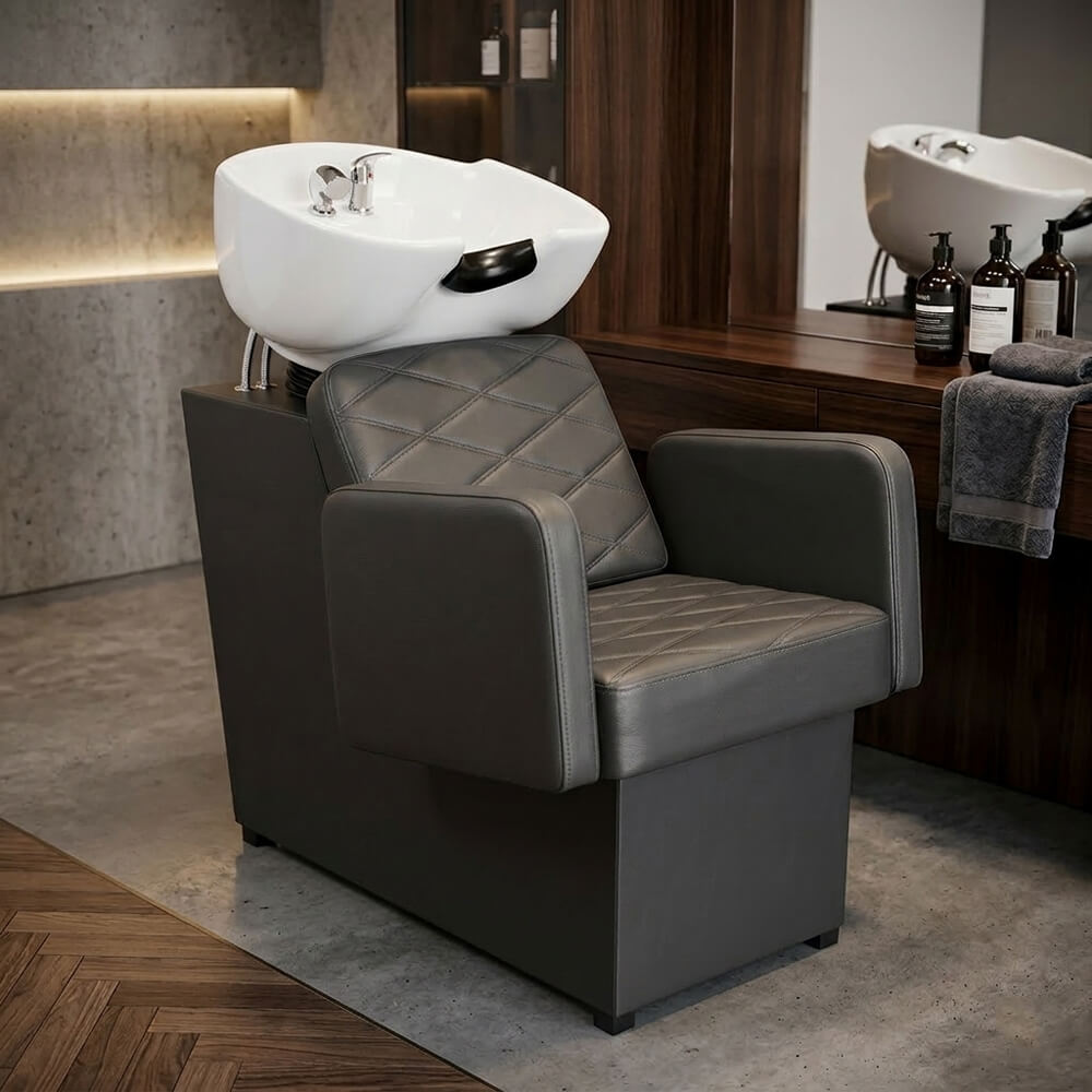 A cuba de cerâmica (porcelana), dá um aspecto de limpeza e profissionalismo. O tampo do ralo proporciona que o cabeleireiro possa lavar cabelos usando toda a extensão da cuba, pois o cabelo da cliente não enroscará no ralo.