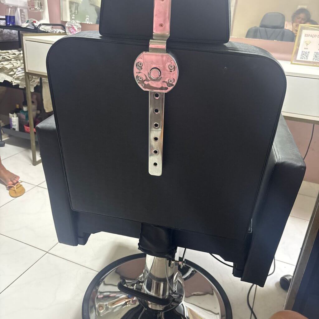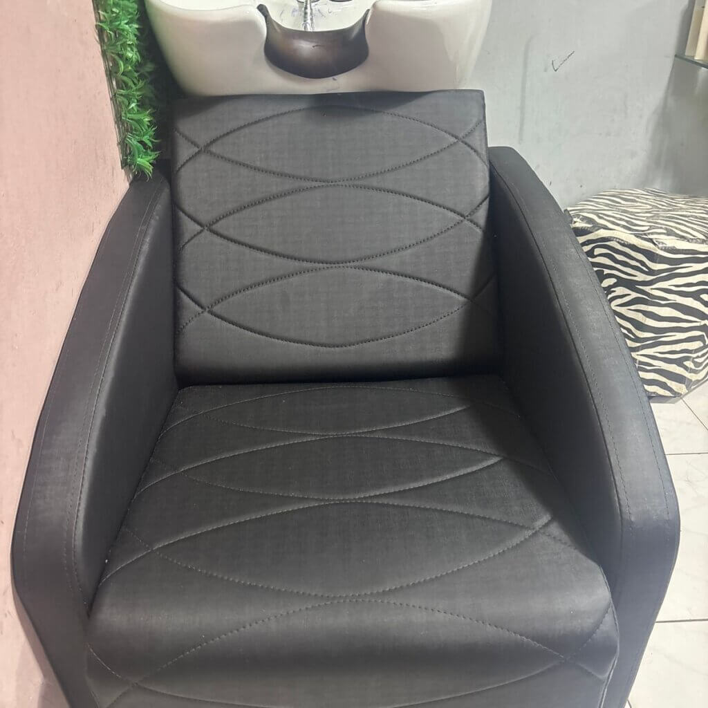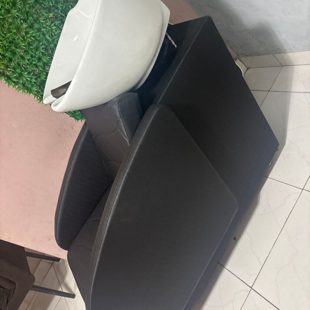 Um lavatório confortável para salão de beleza, com cuba de porcelana reclinável, que combina com todos os ambientes e se destaca pelo conforto. A cuba de porcelana é altamente resistente e fácil de higienizar, garantindo durabilidade e praticidade no dia a dia. O estilo moderno, com estofamento acolchoado e costuras detalhadas, oferece uma experiência relaxante durante a lavagem dos cabelos, graças à cuba reclinável, que se ajusta para maior conforto.