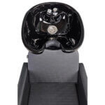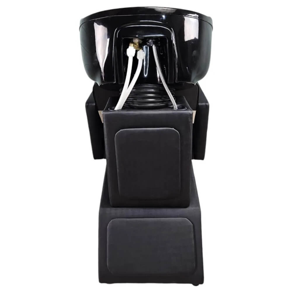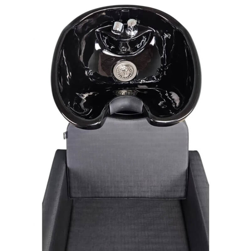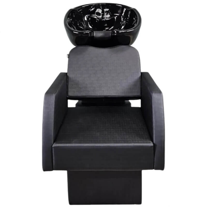 Lavatório de barbeiro conta com uma cuba em porcelana de alta qualidade, resistente e fácil de higienizar na cor preto. Seu estofamento é amplo e aconchegante, com bordados que deixam o visual ainda mais elegante.