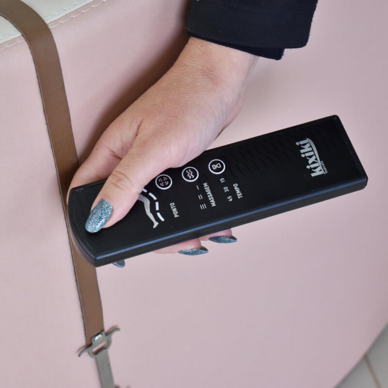 Este lavatório único conta com sistema de elevação elétrico e massageador, acionado por controle remoto sem fio.