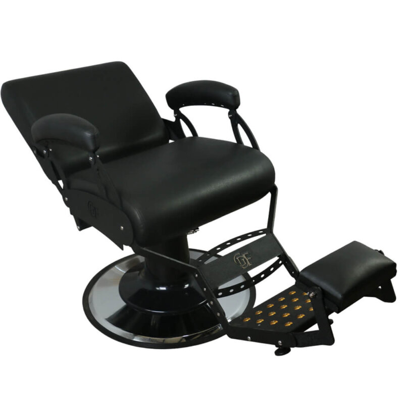 Esta poltrona de barbeiro reclinável  se destaca com sua robusta base redonda, projetada para máxima estabilidade e acabamento em borracha nas bordas, dando um toque de luxo e durabilidade a cadeira. O modelo conta com sistema hidráulico reclinável, proporcionando ajuste fácil de altura e posição. Fabricada com espumas de alta densidade e revestimento em courvin de qualidade superior, garante conforto durante o corte. Os braços e parapé cromados trazem um visual moderno, enquanto o apoio de cabeça ajustável e removível oferece praticidade para o barbeiro.
