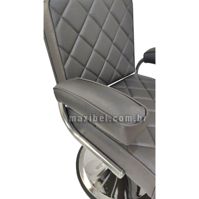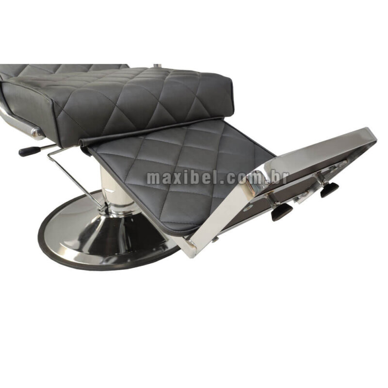 - Ajuste hidráulico de altura da poltrona de barbeiro reclinável, permitindo também o giro da cadeira.