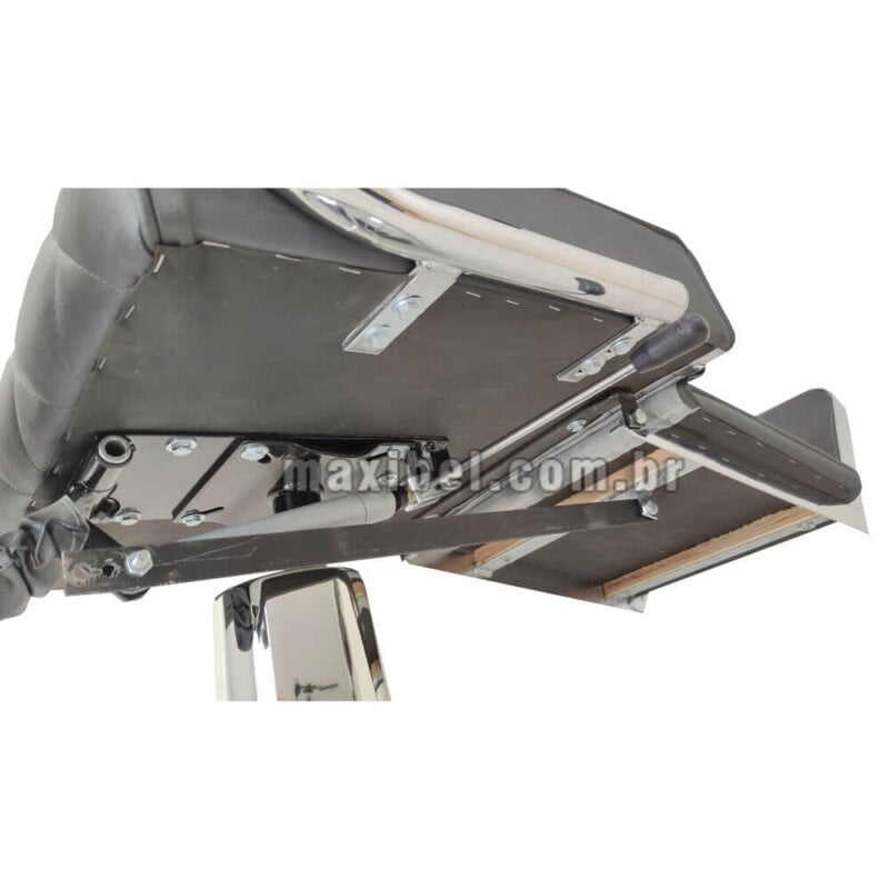 - Descanso de pés que abre ao mesmo tempo em que a reclinação do encosto é acionada, o cliente fica totalmente deitado na poltrona.