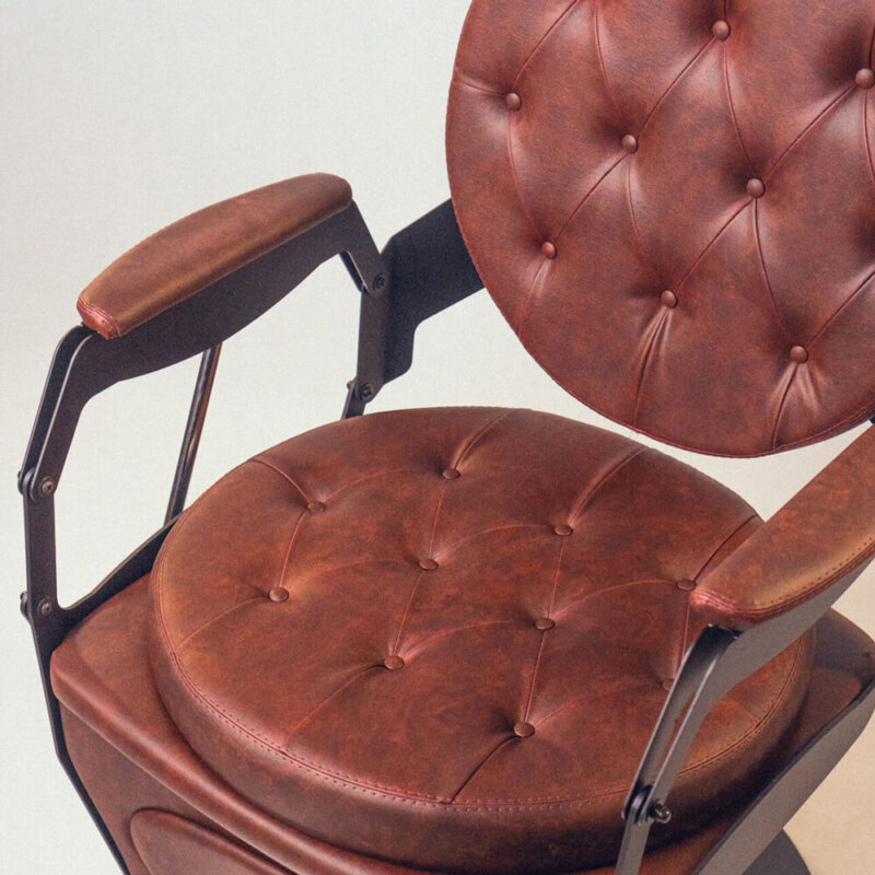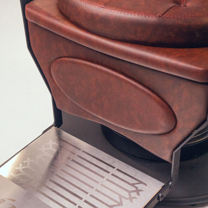 O sistema hidráulico reclinável permite ajustar altura e inclinação com facilidade, garantindo o máximo de conforto para o cliente e praticidade para o barbeiro. O assento e o encosto são feitos com espumas de alta densidade, revestidos em courvin premium, garantindo maciez e durabilidade.